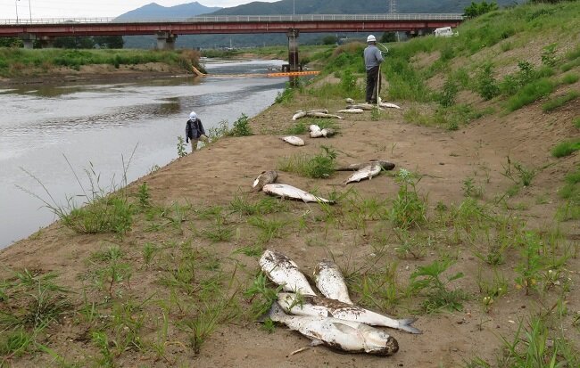 @saisin5858茨城県の桜川でハクレンが大量死「川ですし詰めになり酸欠になったのでは」県が800匹回収 news-nine.kekkonkatsu.info/?p=859083