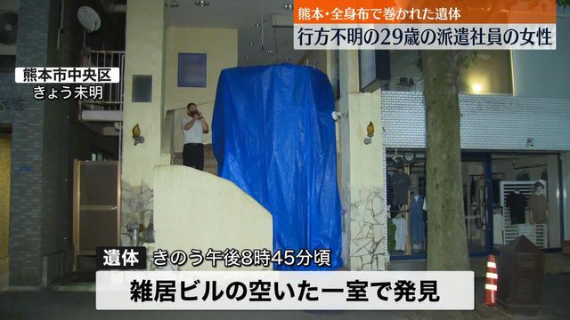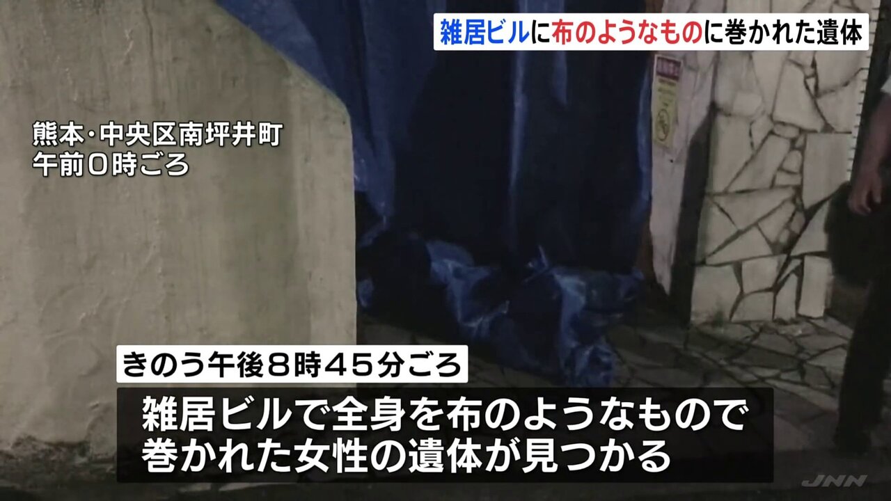 @livedoornews【身元調査】全身を“布”で巻かれた遺体…行方不明女性の捜索中に発見 news.livedoor.com/article/detail… 熊本市の繁華街にあるビルで29日夜、頭からつま先まで全身を布のようなもので巻かれた遺体が見つかった。警察は、行方不明の女性の可能性もあるとみて、身元や死因について調べている。 pic.twitter.com/3q72AAOvrx