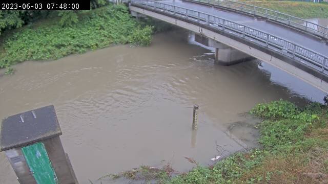 @web_camera▽防災カメラ 06/03 07:20ごろの #綾瀬川 谷古宇水位観測所 のライブ映像 埼玉県草加市松江 1枚目:現在 2枚目:平常時 河川水位:氾濫危険水位超過(Lv4相当) ▽綾瀬川・谷古宇水位観測所ライブカメラと雨雲レーダー camera-map.com/saitama/sokash… pic.twitter.com/yMDnq6VBBq