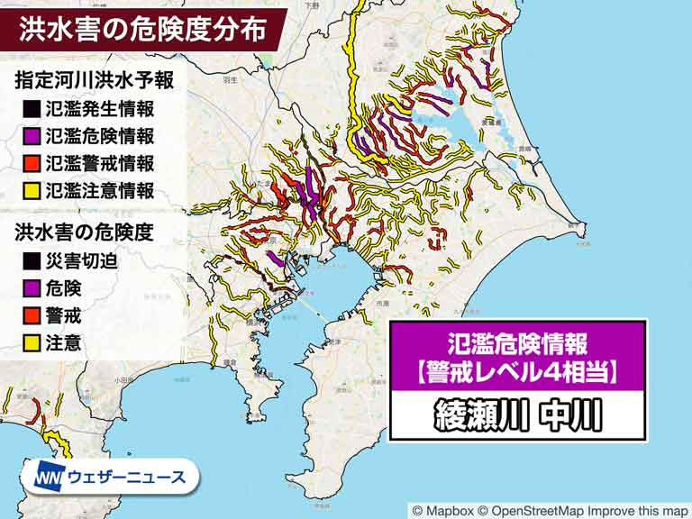 @oobaakiru埼玉・東京 綾瀬川が氾濫のおそれ 警戒レベル4相当の氾濫危険情報発表 - ウェザーニュース weathernews.jp/s/topics/20230…
