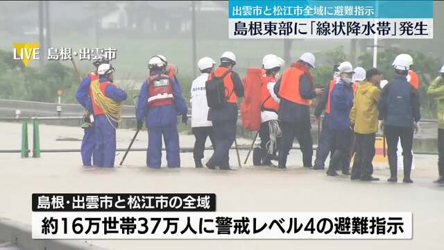 | | 島根県東部に線状降水帯 出雲市と松江市の全域16万世帯37万人に「避難指示」 …な大雨に関する気象情報」を出し、同じ場所で非常に激しい雨が降り続ける「線状降水帯」の発生を発表しました。 現在、出雲市と松江市の全域、およそ16万世帯… (出典:日テレNEWS) |