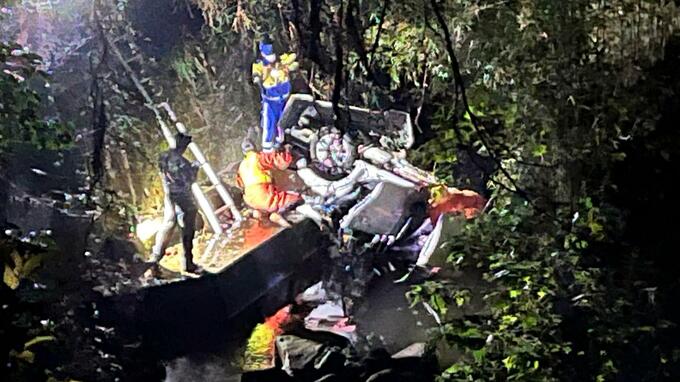 【写真を見る】駐車場のブロック塀を突き破り タクシーが約15m下の川に転落 男性運転手が死亡し客の女性は重傷