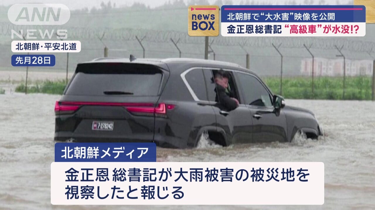 | | 金正恩総書記の頭がゴムボート移動中に木に接触…1000人以上死亡か?北朝鮮洪水で被災地をタバコ片手に直接視察 …未曾有の災害に襲われている北朝鮮で目撃されたのは、鋭い視線で被災現場を視察する最高指導者・金正恩(キム・ジョンウン)総書記の姿。 7月末に北朝鮮を襲った記録的な大雨。 … (出典:FNNプライムオンライン(フジテレビ系)) |