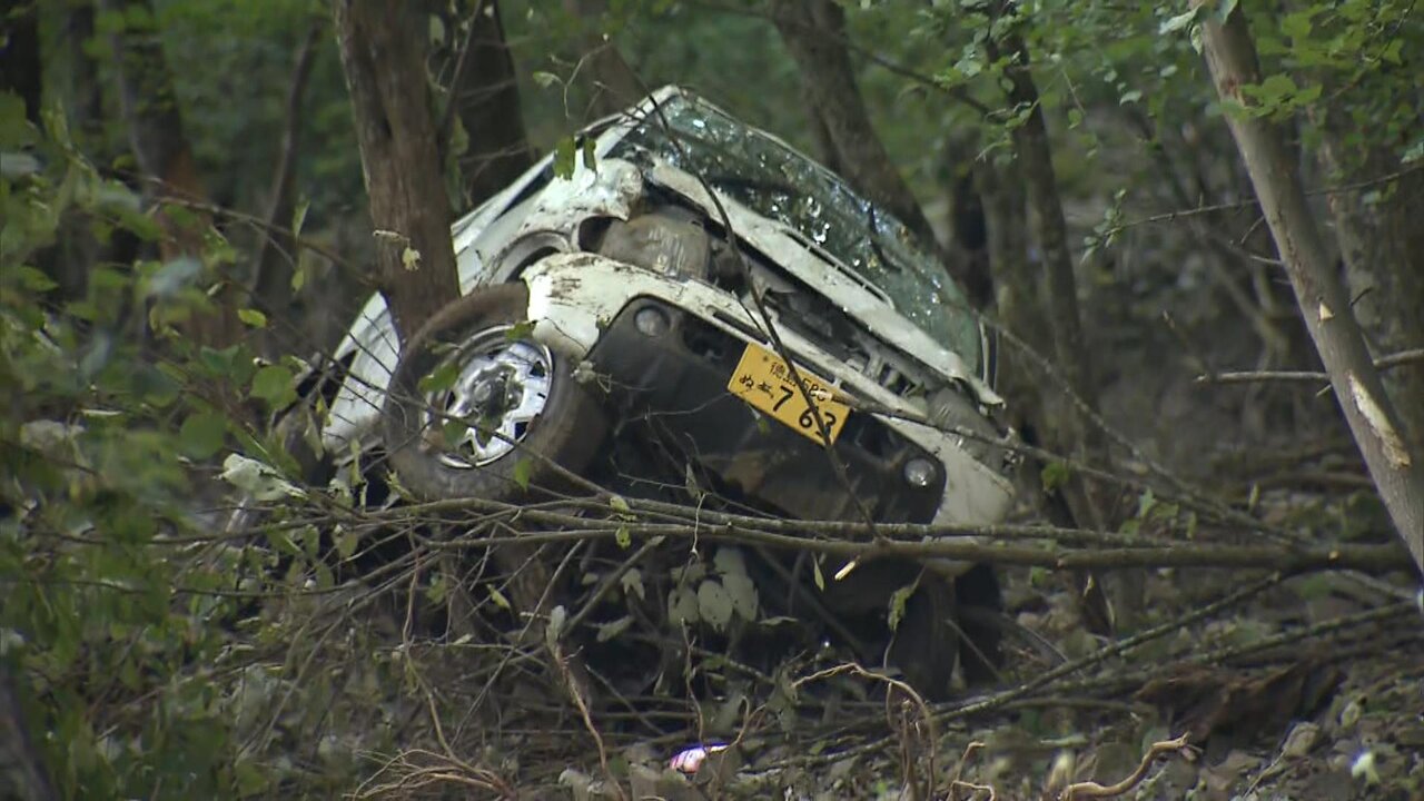 >男女4人の乗った軽自動車が登山道から転落