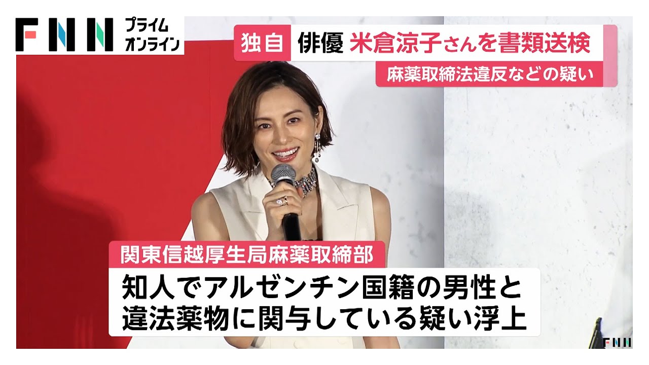 俳優の米倉涼子さんが、*取締法違反などの疑いで書類送検されたことが分かりました。
