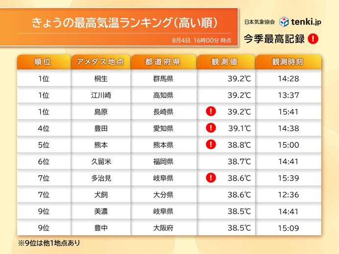 日本列島は5日、高気圧に覆われて気温が上昇し、気象庁によると、午後2時26分、群馬県伊勢崎市の気温が41・8度に達し、国内の観測史上最高記録を更新した。【最上和喜】