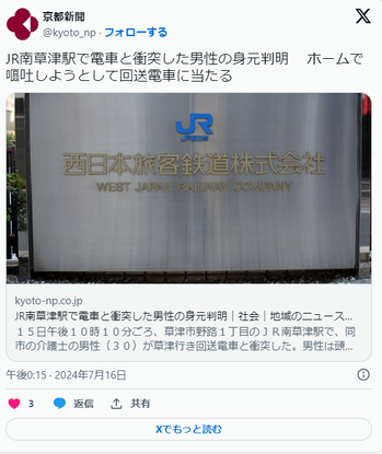| 【速報】20代職員が火葬場の遺体をスマホ撮影、LINEで知人と画像共有 滋賀・湖南 滋賀県湖南市環境政策課の20代男性職員が、昨年度に勤務中、市浄苑(火葬場)で火葬炉内の遺体を撮影し、写真を知人2人と共有していたことが10日、分かった。市は5月31日… (出典:京都新聞) |