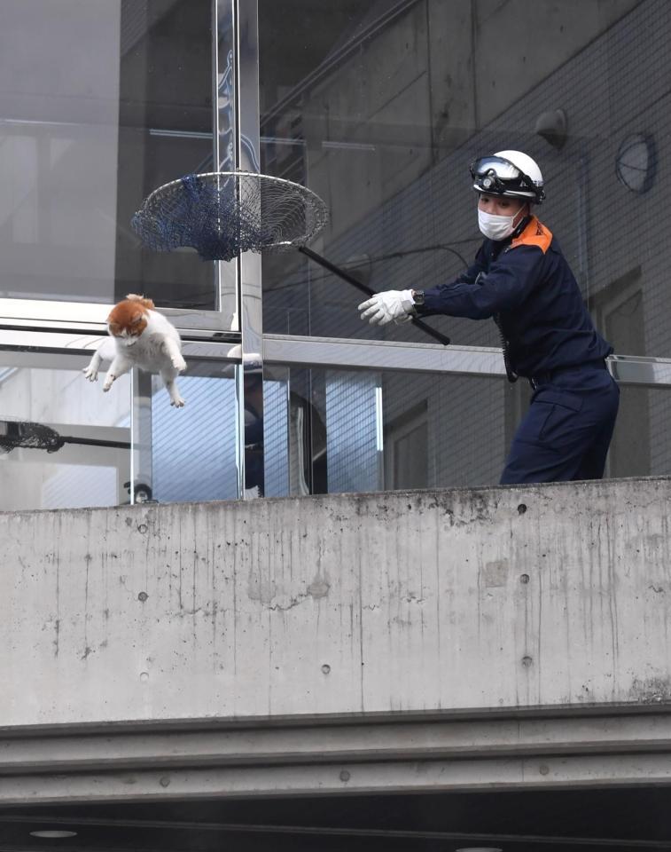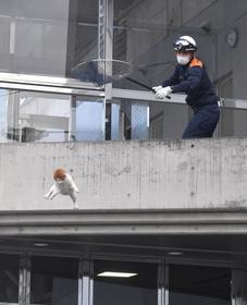 警察と消防によりますと、大津市中消防署に所属する青木裕樹さん(31)は、建物に宙づりになっている要救助者に見立てた人形を2階のベランダに引き上げるために、宙づりになって、人形に器具を取り付ける訓練をしていました。